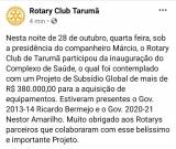 O presidente do clube, Marcio de Souza Silvia, expressou sua alegria em estar participando da entrega dos equipamentos junto ao Complexo de Saúde de Tarumã, e salientou também a importância da Fundação Rotária.